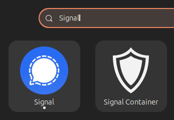 Ko bomo v iskalnik aplikacij vpisali “Signal Container”, se bo prikazala ikona aplikacije, sklikom na njo pa bomo zagnali Signal v kontejnerju (bo pa za zagon potrebno vpisati geslo).